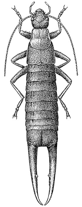 Anisolabididae: Carcinophorinae: Euborellia annulipes (Lucas, 1847). Cosmopolitan.